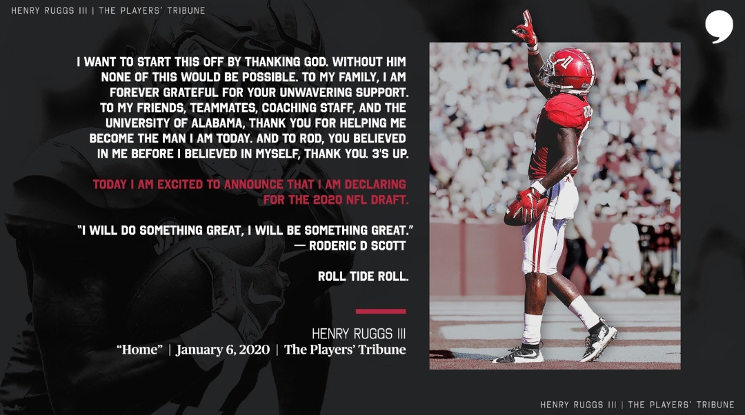 Henry Ruggs III- Wide Receiver Alabama (Highlights Here)